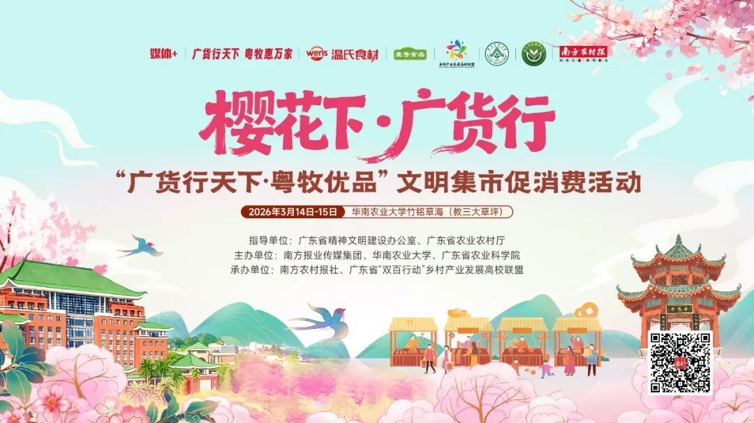 在产业不断发展壮大的同时,展示广东畜牧产业成果的平台也陆续搭建。3月14日至15日,“广货行天下·粤牧优品”文明集市促消费活动将在华南农业大学举行。活动由省文明办、省农业农村厅联合指导,南方报业传媒集团、华南农业大学、省农业科学院主办,将集中展示广东畜牧产业的优质品牌和特色产品。