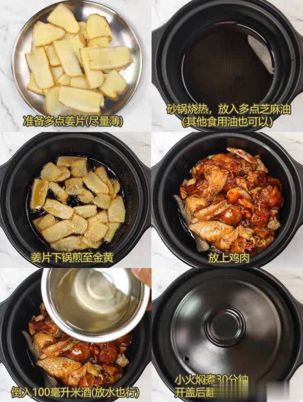 生姜切成薄片专业炒股配资平台,下锅煎会,没有砂锅的普通锅即可。鸡肉小块一点放点熟透。加入米酒或者黄酒清水都可以,焖煮只鸡块熟透,水分收干。